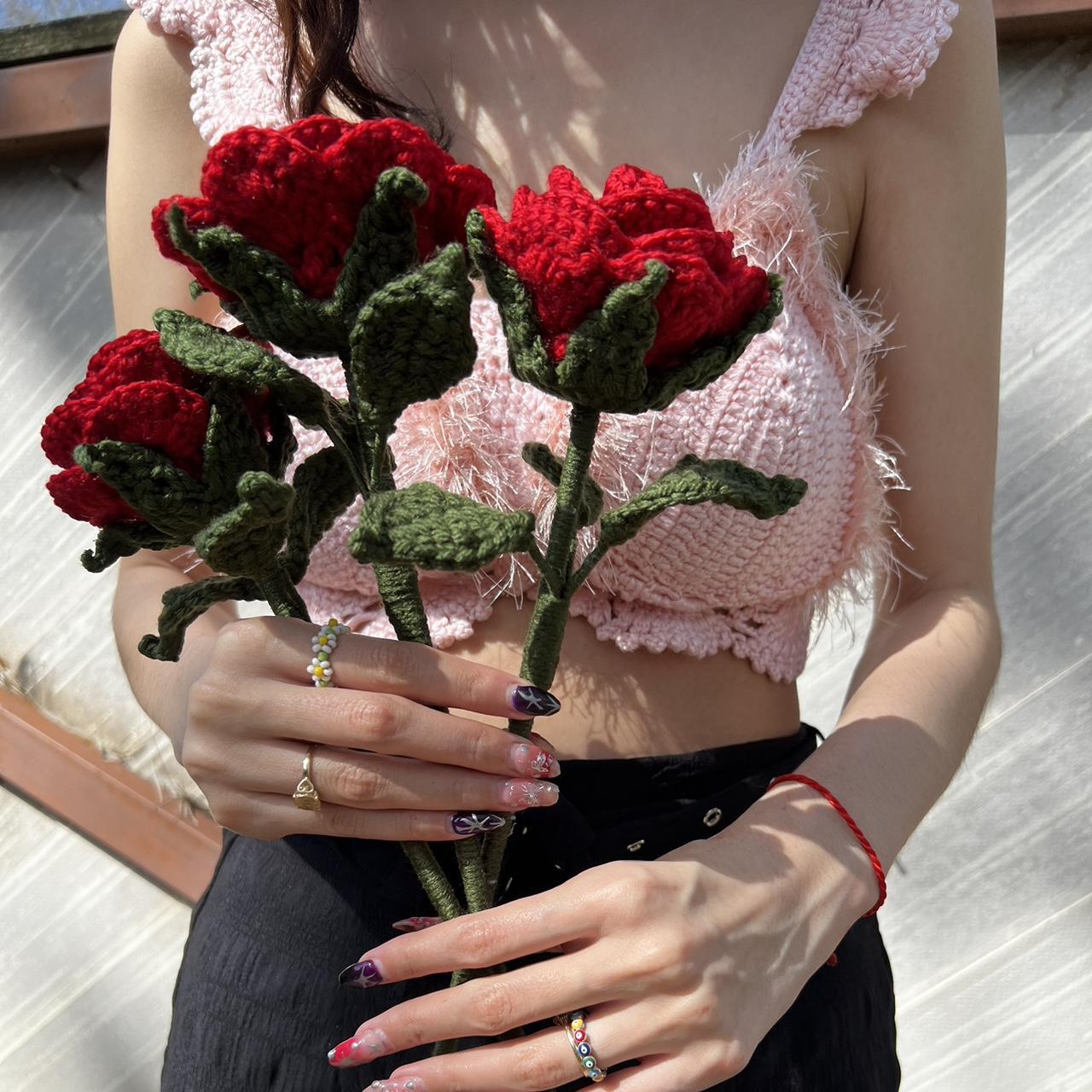 The cutest hand crochet forever roses in red ❤️ Will never wilt or die!! Super cute for a present or for photos or decor So much love and detail put into these One for $20 OR Set of 3 for $50 Hand made with love, message me to purchase in any other color. Will ship in 2 weeks due to being hand made!!